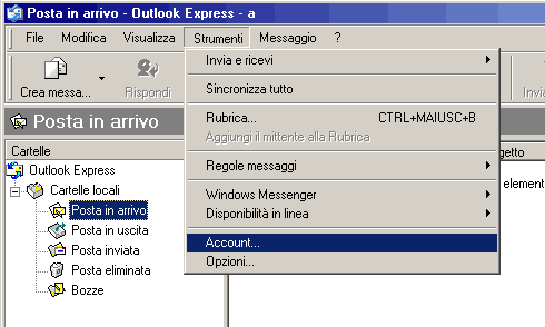 1) Si apra Outlook Express e quindi dal menu selezionare Strumenti e poi Account.