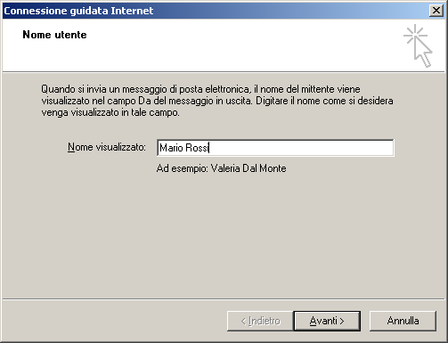 3) Si aprirà un ulteriore finestra. Inserire nel campo Nome visualizzato il proprio nome e cognome, quindi selezionare Avanti.