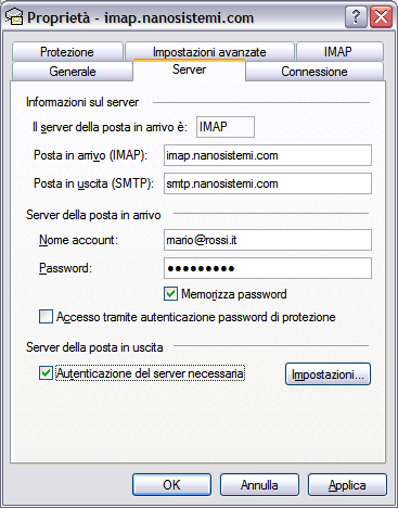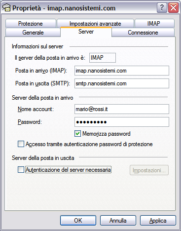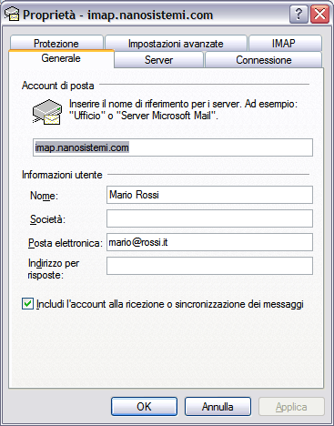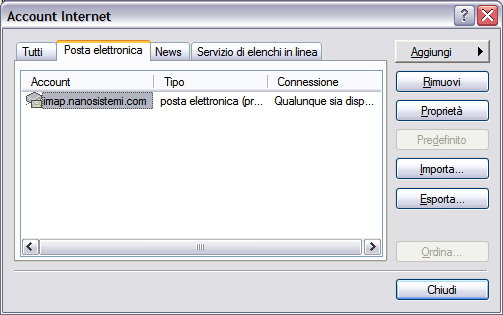 Segue una descrizione passo passo su come configurare Outook Express per utilizzare la posta elettronica in modalità IMAP. I dati inseriti possono essere utilizzati, ovviamente, anche con altri client di posta.